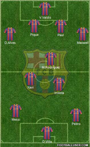 Valdes · Pique · Puyol · Abidal · Alves · Busquets · Iniesta · Xavi · Villa · Pedro · Messi