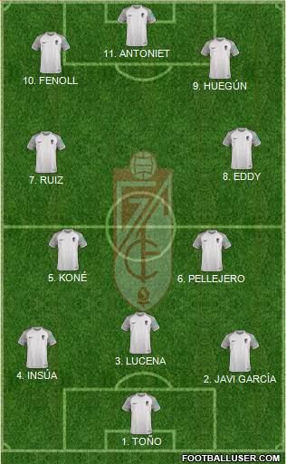 1. TOÑO · 2. JAVI GARCÍA · 4. INSÚA · 3. LUCENA · 6. PELLEJERO · 5. KONÉ · 7. RUIZ · 8. EDDY · 9. HUEGÚN · 10. FENOLL · 11. ANTONIET