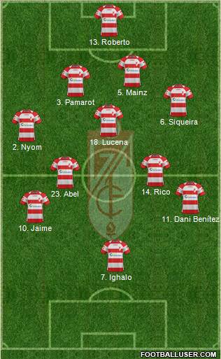 13. Roberto · 5. Mainz · 3. Pamarot · 6. Siqueira · 18. Lucena · 2. Nyom · 14. Rico · 23. Abel · 11. Dani Benítez · 10. Jaime · 7. Ighalo
