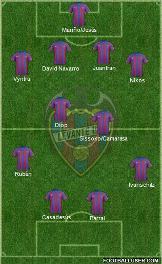Jesús · Navarro · Juanfran · Vyntra · Nikos · Diop · Sissoko · Camarasa · Rubén · Barral · Casadesús
