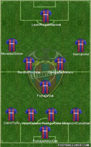 Sergio León · Hernani · Morales · Campaña · Bardhi · Vukcevic · Coke · Toño · Cabaco · Vezo · Aitor