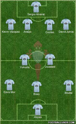 Rubén · Costas · Araujo · Mallo · Juncá · Okay · Lobotka/Beltrán · Brais · Hulsjager · Boufal · Maxi