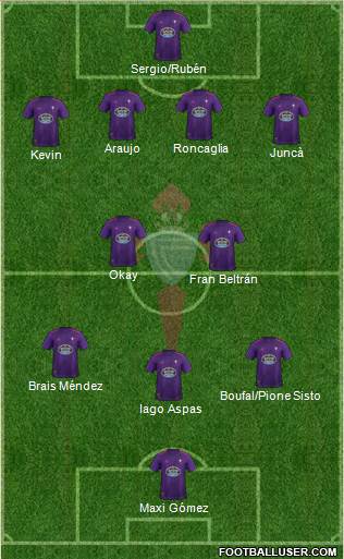 RUBÉN BLANCO · ARAUJO · COSTAS · JUNIOR · MALLO · BELTRAN · LOBOTKA · ASPAS · SISTO · BOUFAL · GOMEZ