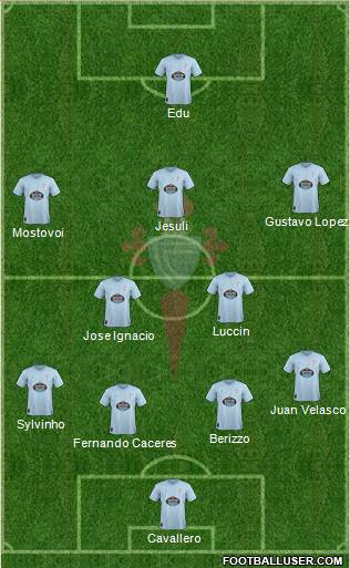 Sergio · Roncaglia · Cabral · Junca · Mallo · Beltran · Okay · Brais · Hulsjager · Aspas · Maxi