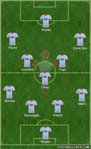 RUBÉN BLANCO · ARAUJO · CABRAL · DAVID JUNCA · HUGO MALLO · LOBOTKA · YOKUSLU · PIONE SISTO · BOUFAL · IAGO ASPAS · MAXI GOMEZ