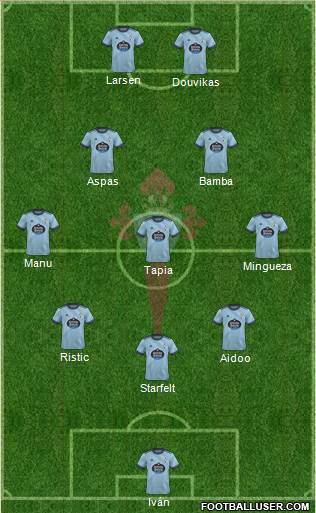 Guaita · Aidoo · Starfelt · Valentín · Manquillo · Tapia · Chavez · Fidalgo · Aspas · Paulinho · Larsen