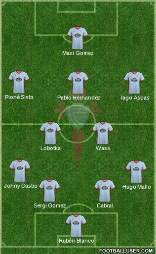 RUBÉN BLANCO · GOMES · CABRAL · HUGO MALLO · CASTRO · RADOJA · LOBOTKA · SISTO · HERNANDEZ · ASPAS · GOMEZ