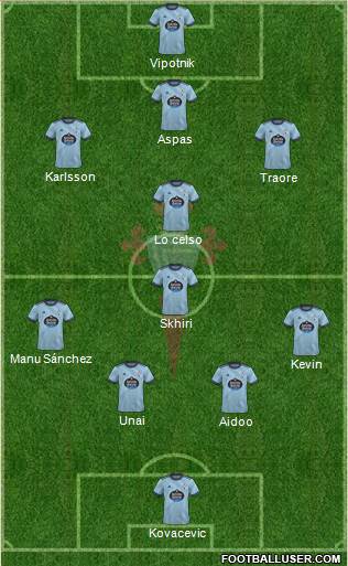 Iván · Starfelt · Unai · Aidoo · Tapia · Ristic · Mingueza · Aspas · Bamba · Douvikas · Larsen