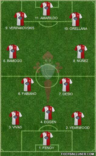 Delantero · Aspas · Orsic · Spertsyan - Ounahi · Veiga · MCD · P. Espino · Mingueza · Djiku · Unai · Dimitrovic