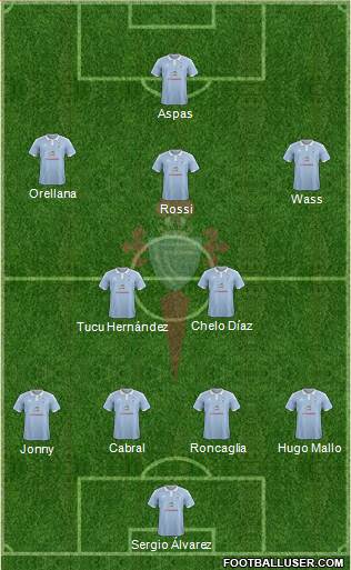 Sergio Alvarez · Sergi Gomez · Gustavo Cabral · Hugo Mallo · Johny Castro · Radoja · Wass · Orellana · Pioné Sisto · Iago Aspas · Guidetti