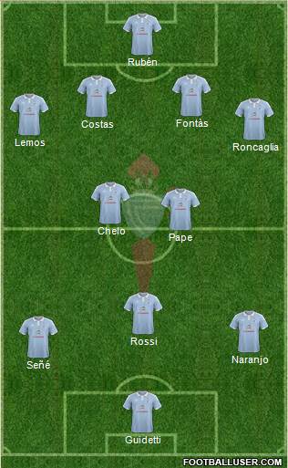 Sergio Alvárez · Jonny · Hugo Mallo · Cabral · Roncaglia · Tucu Hernández · Chelo Díaz · Wass · Orellana · Pione · Aspas