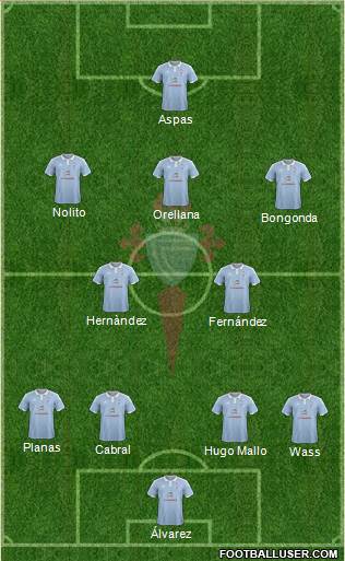 Ruben/Sergio · Cabral · Sergi Gomez (4) · Jonny · Hugo Mallo (4) · Wass · Augusto/Madinda · Pablo Hernandez · Orellana · Bongonda · Iago Aspas (4)