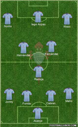 Aspas · Nolito · Orellana · Wass · Hernández · Fernández · Jonny · Mallo · Fontás · Gómez · Sergio Álvarez