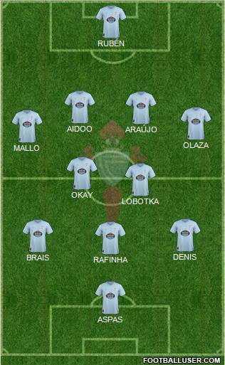 Rubén · Araújo · Aidoo · Hugo · Olaza · Lobotka · Brais · Denis · Mina · Rafinha · Aspas