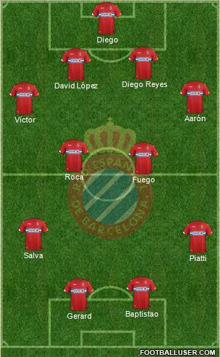 Diego López · Diego Reyes · David López · Aarón · Víctor Sánchez · Marc Rosa · Javi Fuego · Piatti · Hernán · Baptistao · Gerard Moreno