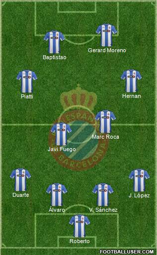 Diego López · Óscar Duarte · David López · Javi López · Víctor Sánchez · Marc Roca · Diop · Piatti · Hernán · Gerard Moreno · Baptistao