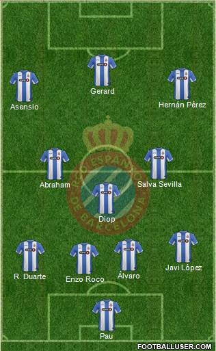 Pau López · Ó. Duarte · Álvaro González · Javi López · Duarte · Diop · Víctor Sánchez · Cañas · Hernán Pérez · Asensio · Gerard Moreno