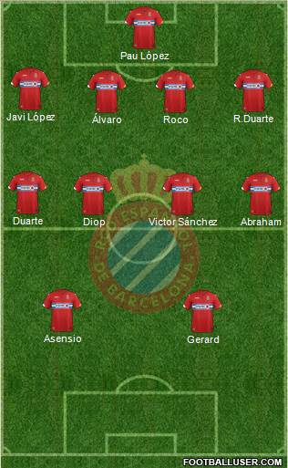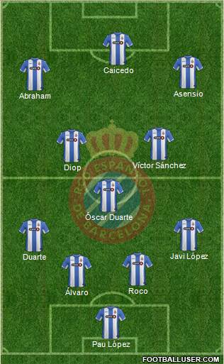 Pau López · Óscar Duarte · Álvaro · Javi López · Duarte · Diop · Víctor Sánchez · Abraham · Hernán Pérez · Asensio · Caicedo