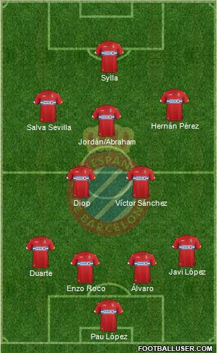Arlauskis/Pau López · Álvaro · Enzo Roco/O. Duarte · Víctor Álvarez/R. Duarte · Javi López · Diop · Víctor Sánchez/Jordán · Asensio · Hernán Pérez · Gerard Moreno · Caicedo/Salva Sevilla