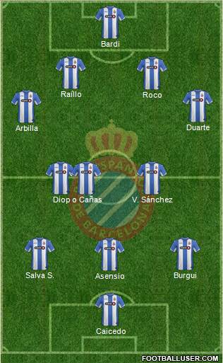 Pau López · Álvaro · Roco · Duarte · Javi López · Diop · Víctor Sánchez · Asensio · Hernán Pérez · Gerard Moreno · Caicedo
