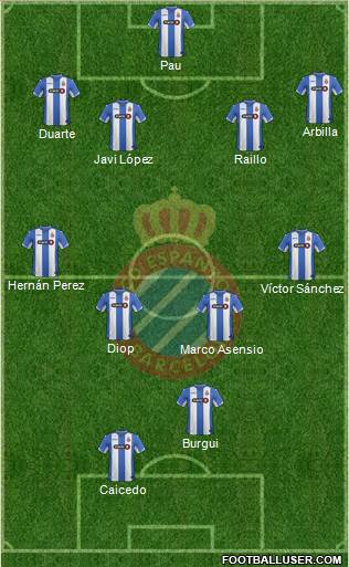 Pau · Álvaro · Raillo/Arbilla · Javi López · Fuentes · Diop · Víctor Sánchez · Víctor Álvarez · Hernán Pérez · Asensio/Gerard Moreno · Caicedo