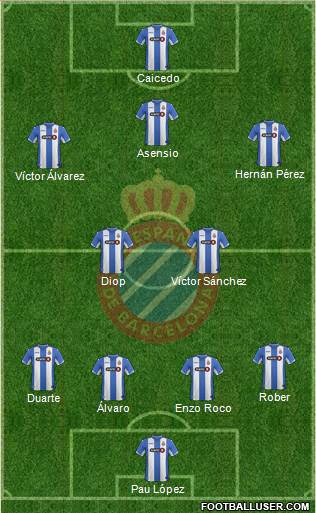 Caicedo · Gerard Moreno · Hernán Pérez · Burgui · Diop · Victor Sánchez · Enzo Roco · Duarte · Arbila · Alvaro · Pau