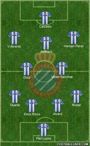 Pau Lopez · Alvaro · Enzo Roco (4) · Javi Lopez · Fuentes · Victor Sanchez · Diop/Abraham · Victor Alvarez · Asensio · Hernan Perez · Caicedo
