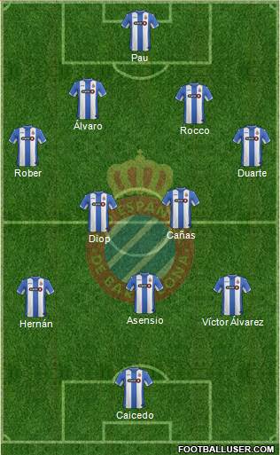 Pau López · Álvaro · Enzo Roco · Duarte · Rober · Diop · Víctor Sánchez · Víctor Álvarez · Hernán Pérez · Asensio · Caicedo