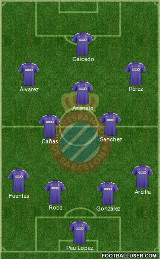 Pau Lopez · Fuentes · Roco · Alvaro · Javi Lopez · Victor Sanchez · Diop · Marco Asensio · Victor Alvarez · Hernan Perez · Caicedo