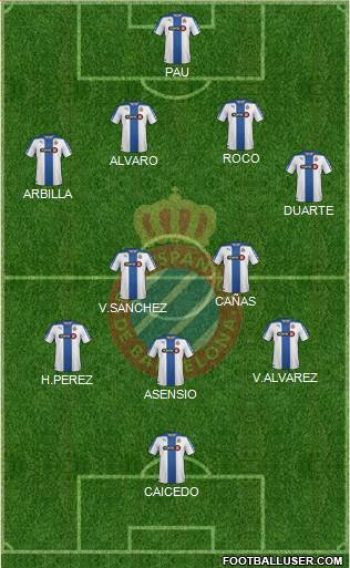 Pau López · Roco · Álvaro · Fuentes · Javi López/Arbilla · Cañas · Víctor Sánchez · Victor Álvarez · Hernán Pérez · Asensio · Caicedo