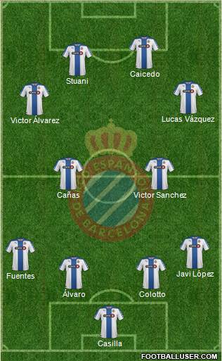 Casilla · Javi Lopez · Alvaro · Colotto · Fuentes · Cañas · Abraham · Lucas Vazquez · Montañes · Sergio Garcia · Caicedo/Stuani