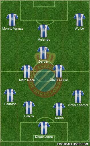 Diego Lopez · Calero · Naldo · Bernardo · victor gomez · pedrosa · David Lopez · Darder · Marc Roca · Monito Vargas · Ferreyra