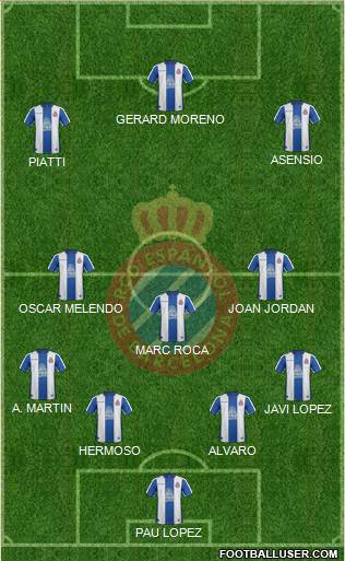 Jonathan Calleri · Matías Vargas · Oscar Melendo · Víctor Sánchez · Sergi Darder · Marc Roca · Adrià Pedrosa · Javi López · Fernando Calero · David López · Diego López