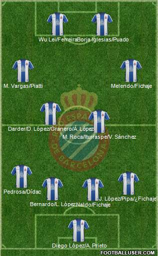 Diego Lopez/Kameni · David López/Naldo · Víctor Ruiz/Hermoso · Lirola/Javi López · Didac/Pedrosa · Romeu/Diop · Marc Roca/Víctor · Oliver/Melendo · Callejón/Hernán · Coutinho/Piatti · Borja/Baptistao/Stuani