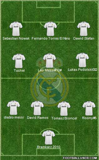 1.Casillas(C) · 2.Albiol · 3.Pepe. · 12.Marcelo · 4.Ramos · 14.Alonso · 10.Snejder · 8.Kaka · 7.Ronaldo · 11.Ozil · 9.Higuain