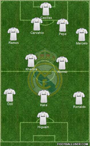 Casillas · carvalho · Pepe · Ramos · xavi alonso · Lass Diarra · ozil · kaka · Di Maria · Cristiano Ronaldo · Benzema
