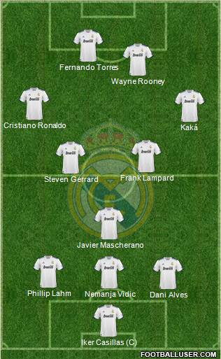 Casillas · R.Albiol · Pepe · Marcelo · S.Ramos · Xabi Alonso · M.Özil · Kaka · C.Ronaldo · A.Di Maria · G.Higuan