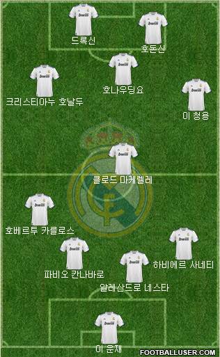 Casillas · Carvalho · Pepe · Marcelo · Ramos · Khedira · Alonso · Ozil · Kaka · Ronaldo · Higuain