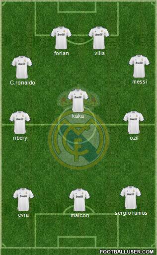 Casillas · Vidic · Evra · Pepe · Ramos · Xabi Alonso · Kaka · Ronaldo · Di Maria · Ozil · Higuain