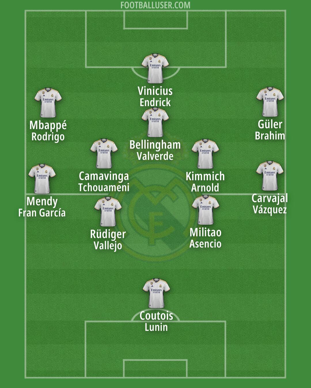 Rudiger · Huijsen · Trent · F.Garcia · Bellingham · Tchoumeni · Arda · Valverde · Vini Jr · Gonzalo · Courtois