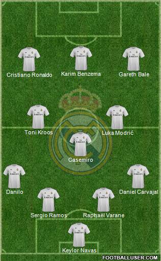 Keylor Navas · Ramos · Nacho/Pepe · Carvajal · Marcelo · Casemiro · James · Kovacic · Cristiano Ronaldo · Bale · Benzema/Morata