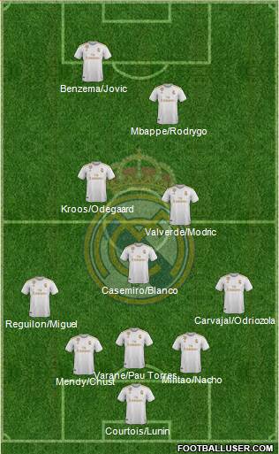 LEAO · RODRYGO · VINICIUS · CAMAVINGA · FRAN GARCIA · BELLINGHAM · VALVERDE · ALABA · MILITAO · RUDIGER · CURTOIS