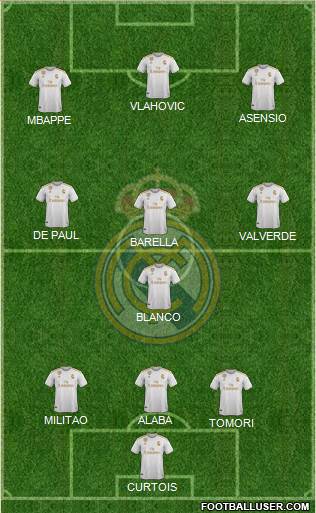 Courtois · Carvajal · Militao · Alaba · Rüdiger · Camavinga · Kroos · Modric · Valverde · Vinicius · Benzema