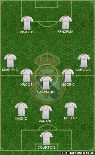 Benzema · Asensio · Vinicius Jr · Valverde · Camavinga · Kroos · Carvajal · F. Mendy · Militão · Alaba · Courtois