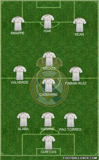 Courtois · Rudiger · Alaba · Militao · Tchouameni · Camavinga · Valverde · Bellingham · Benzema · Vinicius · Rodrygo
