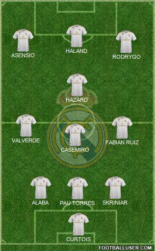 Courtois/Lunin · Alaba/A.Rudiger · E.Militao/Nacho · F.Mendy/Fran Garcia · Carvajal/Malo Gusto · Tchouameni/Camavinga · F.Valverde/Kroos · Modric/J.Bellingham · Vinicius Jr/Brahim · Rodrygo/Asensio/Lucas V. · Benzema/M.Thuram