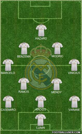 Lunin · Vallejo · Nacho · F. Mendy · L. Vasquez · Tchouameni · Ceballos · Camavinga · Hazard · Rodrygo · Mariano · Benzema · Vini Jr · F. Valverde · Modric · Kroos · Casemiro · D. Alaba · Carvajal · Rudiger · E. Militao · Courtois