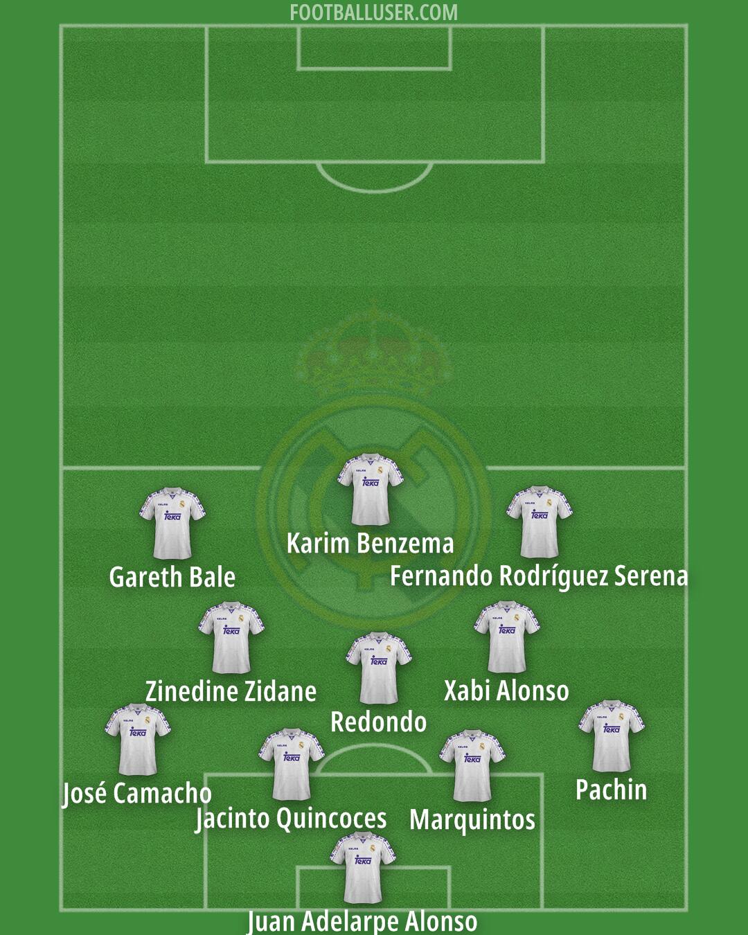 Cassilas (1) · Carvalho (6) · Ramos (4) · Pepè (3) · Marcelo (12) · Alonso (14) · Kroos (8) · Modric (10) · Benzema (9) · Bale (11) · Ronaldo (7)