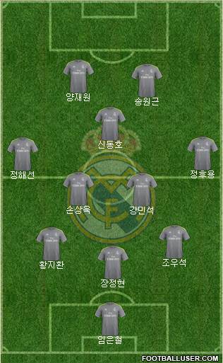 카시야스 · 라모스 · 페페 · 마르셀로 · 아르벨로아 · 알론소 · 라스 디아라 · 외질 · 디 마리아 · 호날두 · 벤제마