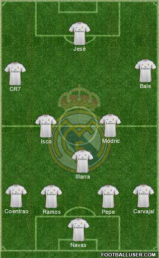 Navas · Ramos · Coentrao · Pepe · Carvajal · Illarra · Kroos · Modric · CR7 · Bale · Benzema